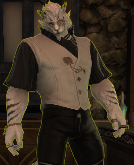 Leodeix AgadevorA Hrothgar who proved his healing abilities after watching an unfortunate accident during a duel. Recruited by the owner herself, Leodeix will always give those in need a quick fix, but also a few stories about his adventures all over Eorzea and the Far East
